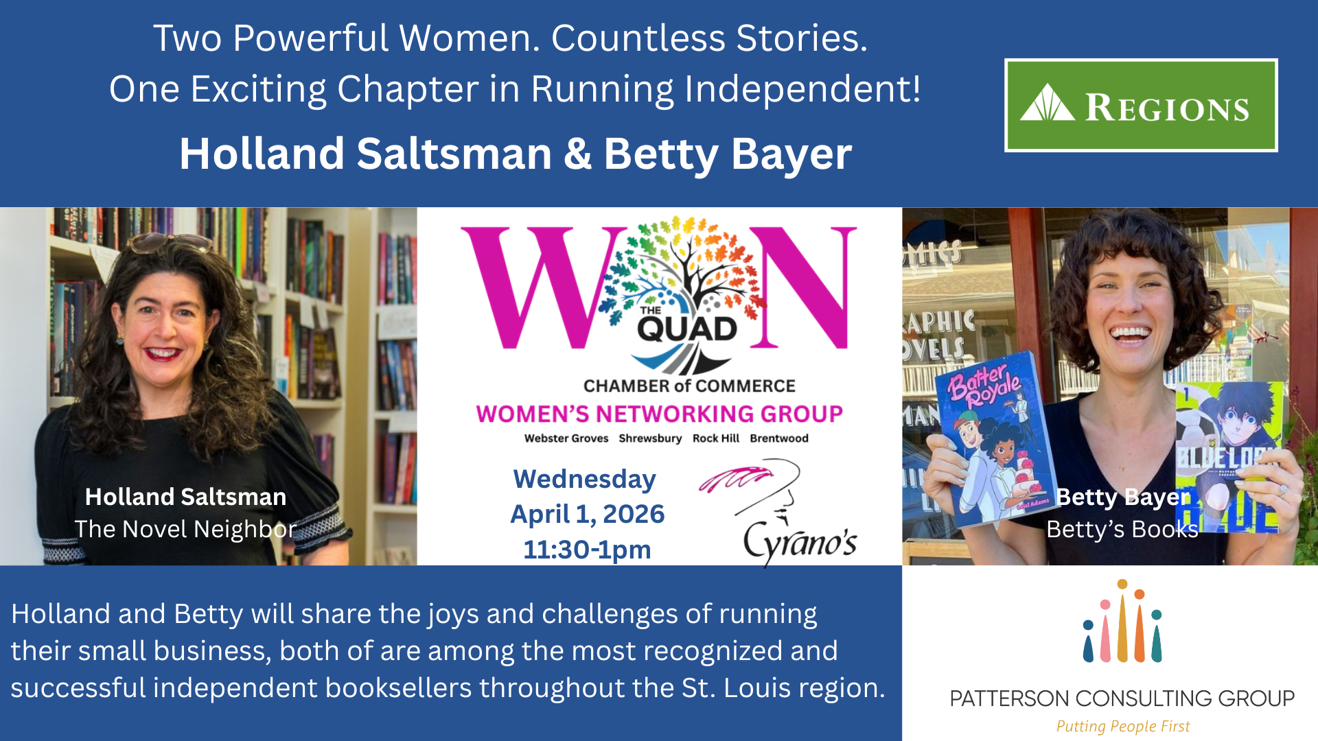Independent bookstore owners Holland Saltsman from the Novel Neighbor and Betty Bayer of Betty’s Books. Just in time for April 25th which is National Independent Bookstore Day. Holland and Betty will share the joys and challenges of running a small business that happens to be an independent bookstore, PLUS how their bookstores can help support other local businesses – just like YOURS. Don’t miss it!