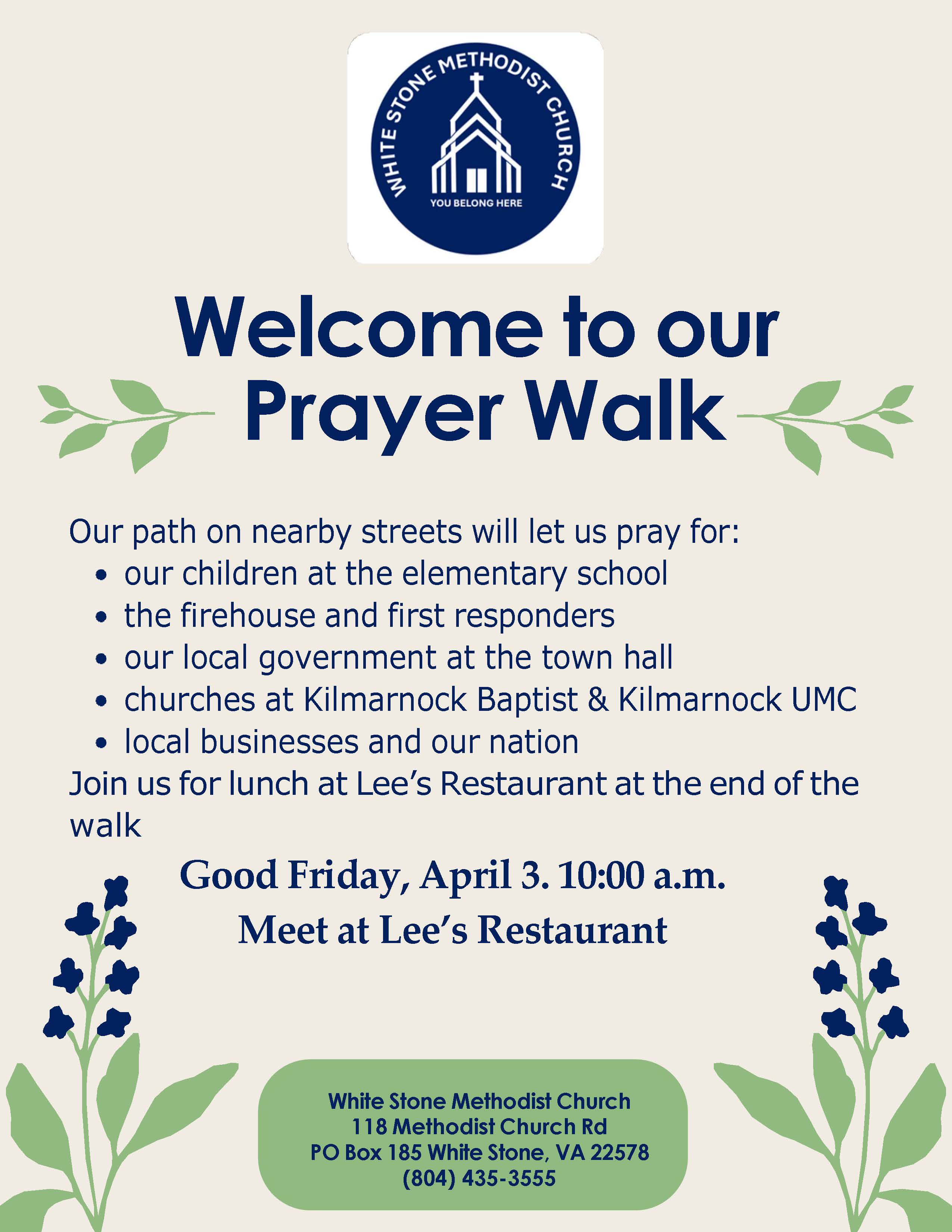 Prayer Walk will begin and end at Lee's Restaurant