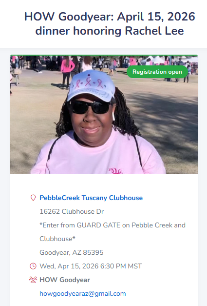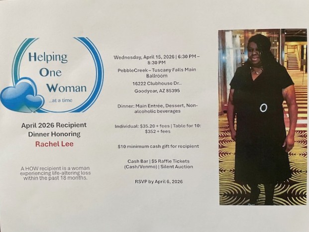 Helping One Woman - Rachel Lee - PebbleCreek-Tuscany Falls Main Ballroom - 16222 Clubhouse Dr., Goodyear