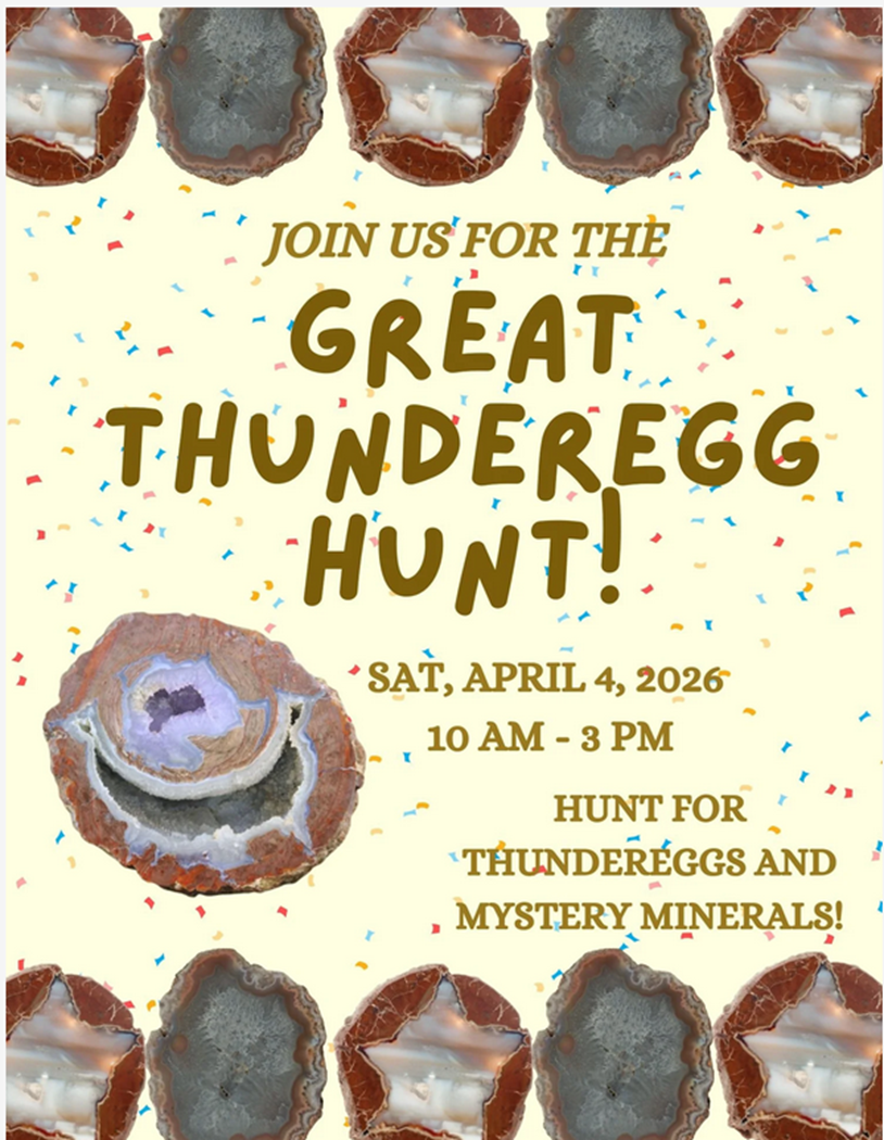 Participate in our EGG HUNT and take home a THUNDEREGG or a MYSTERY MINERAL!